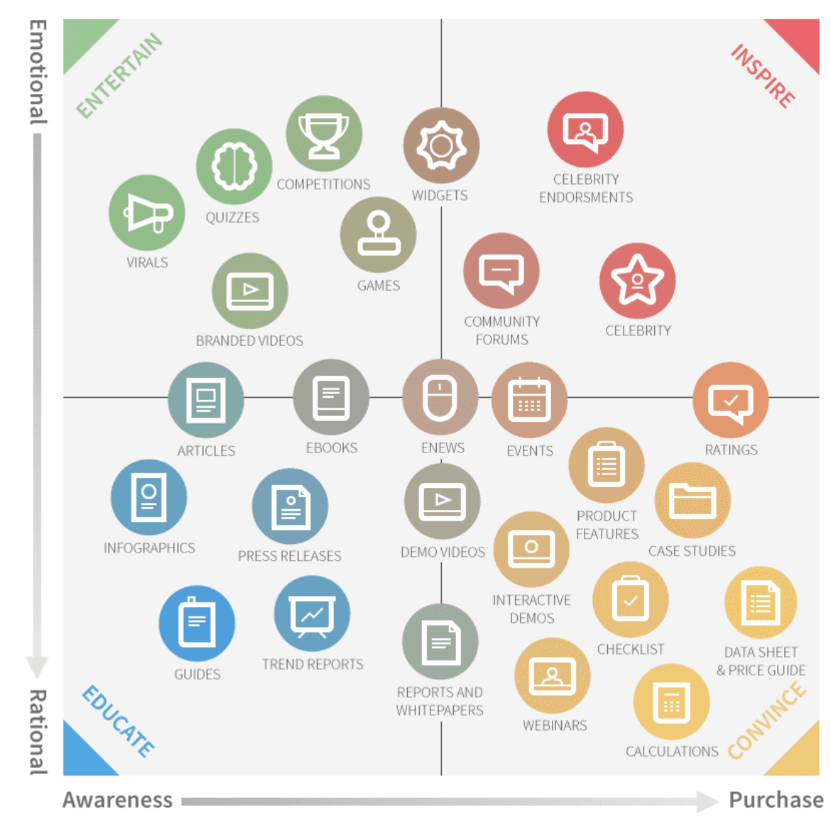 Content Marketing Matrix โดย Smart Insight เป็นรูปแบบการแบ่งประเภทคอนเทนต์ที่ถือว่าเข้าใจง่ายที่สุดแล้ว